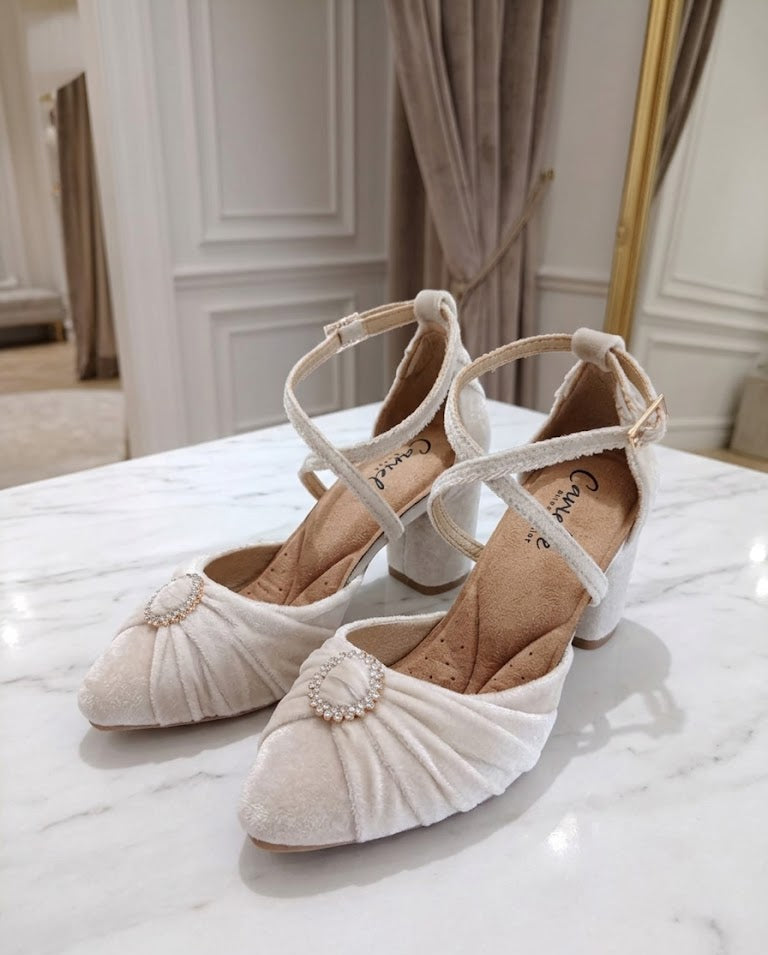 Our Emma model is a celebration of meticulous detail. With a design that evokes the sophistication of great fashion eras, this shoe stands out for its rich texture and the way it catches the light, making it a favorite choice for brides and guests who want a centerpiece in their look.