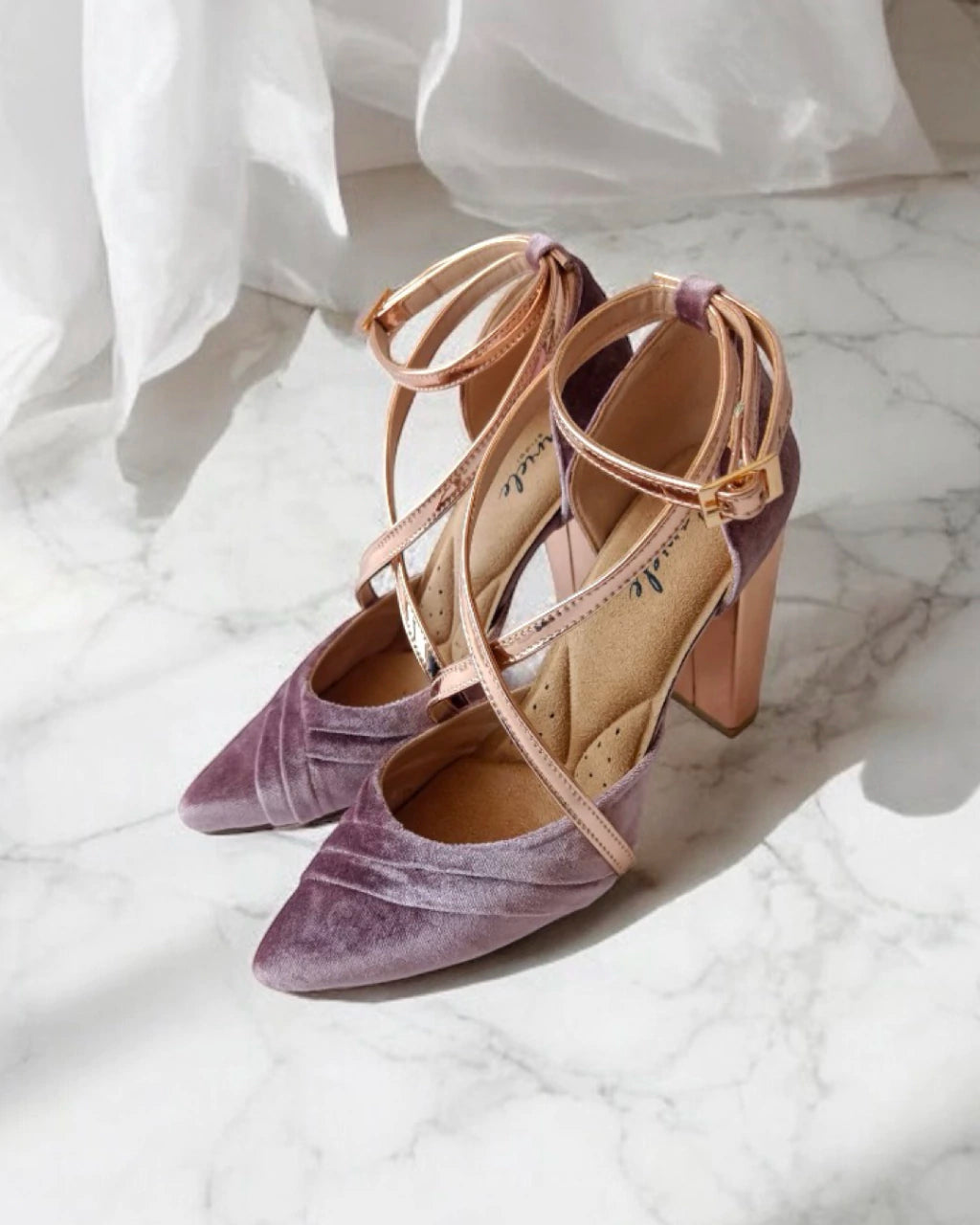 Craftsmanship and Infinite Customization: Made entirely of fine premium silk velvet , this Cariele piece stands out for its design of metallic crisscrossing straps that delicately embrace the foot. The true magic of Viviana lies in its absolute versatility:
