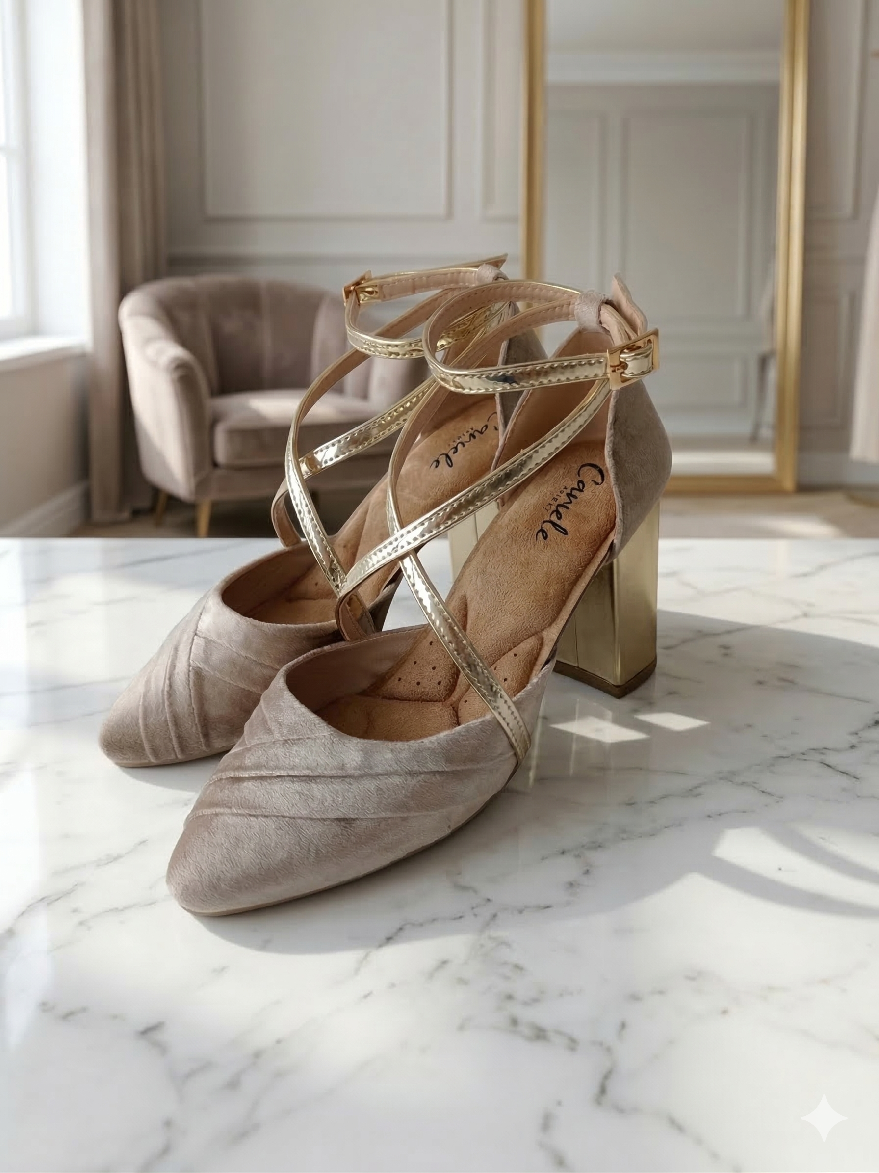 The Viviana model is a sublime example of the fusion between romantic delicacy and the architectural comfort of Cariele . With its palette of soft tones and metallic details, this shoe was designed for those who value the d'Orsay aesthetic with a touch of modernity.