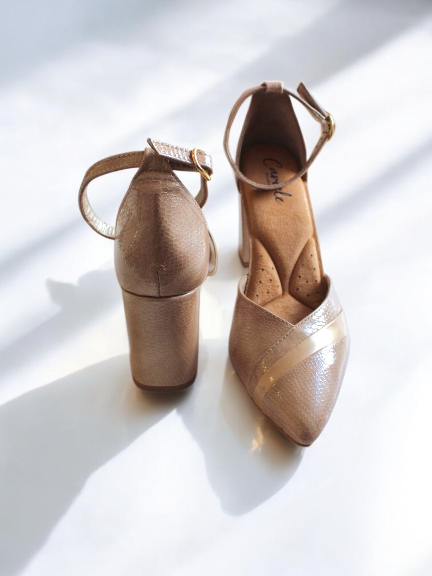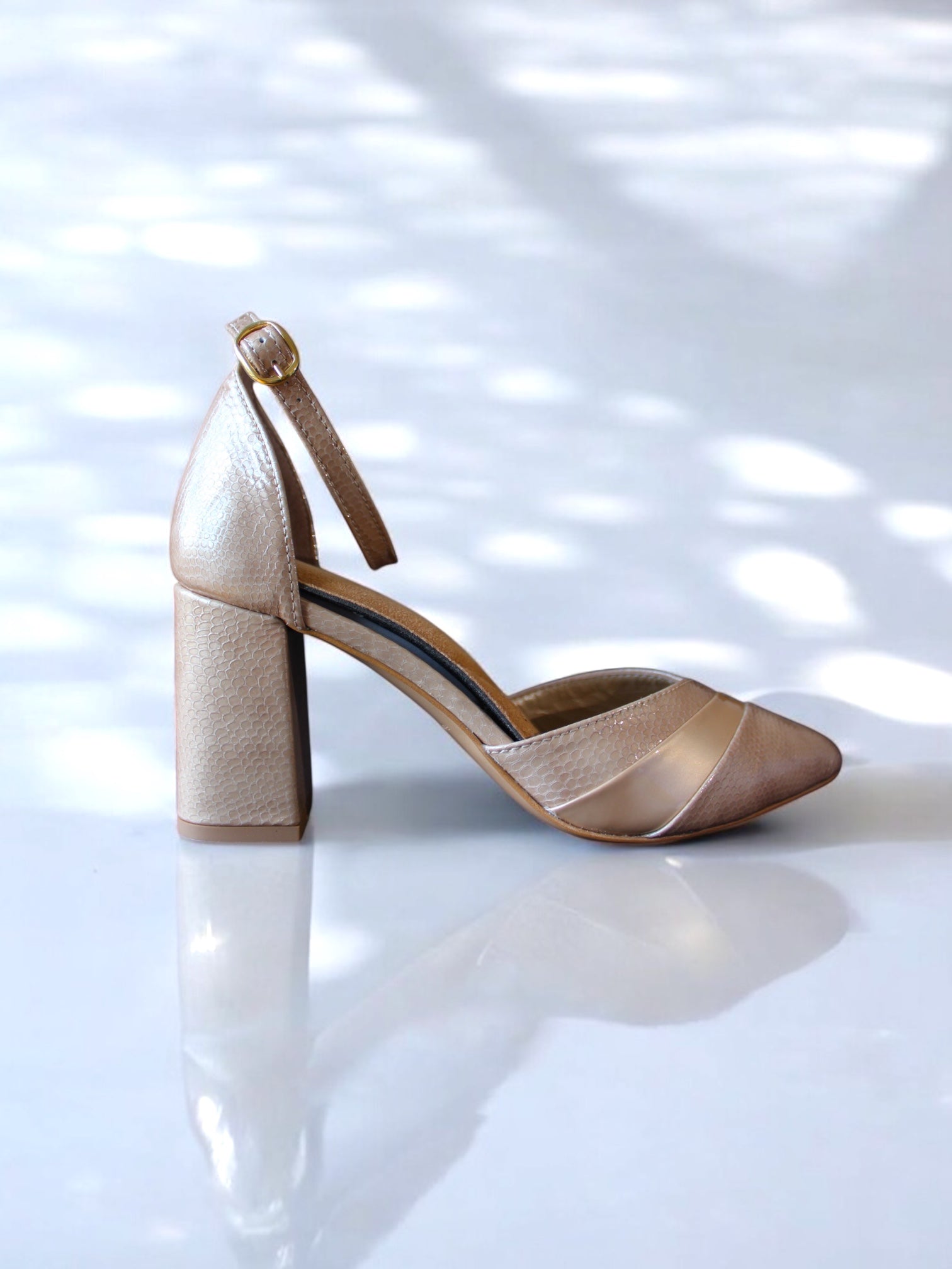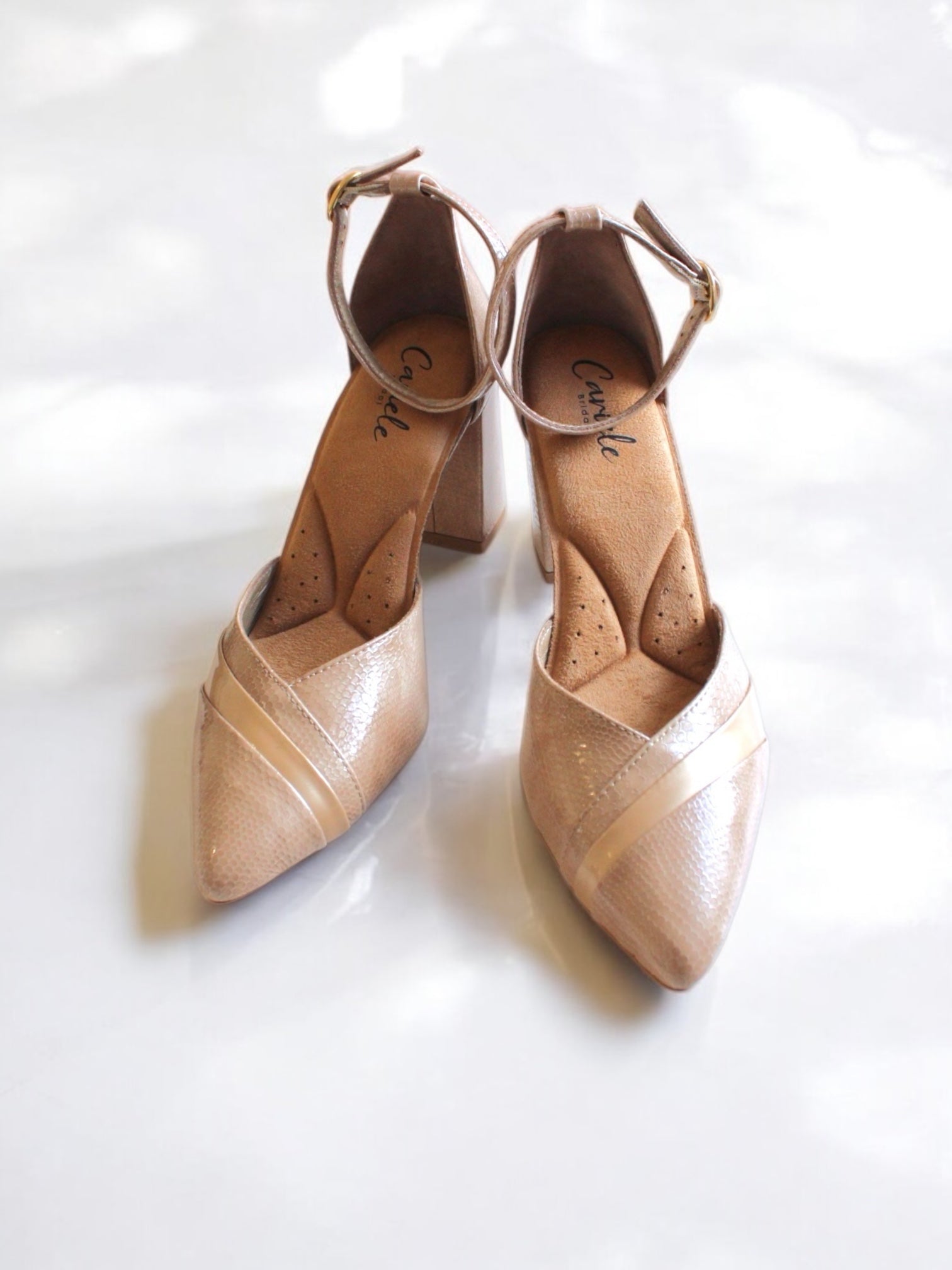 El tacón de bloque de 8 cm proporciona la altura ideal para estilizar la silueta sin sacrificar la estabilidad, lo que hace que este modelo sea perfecto para novias modernas, invitadas o eventos especiales. Su forma está diseñada para resistir largas horas de uso, combinando estética y comodidad.