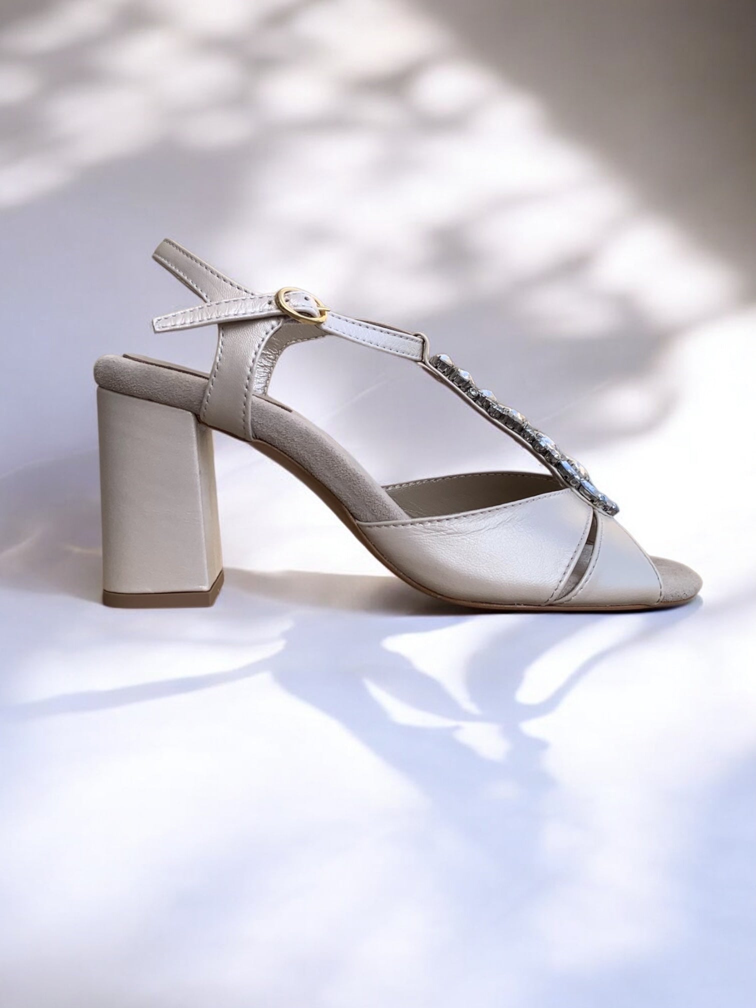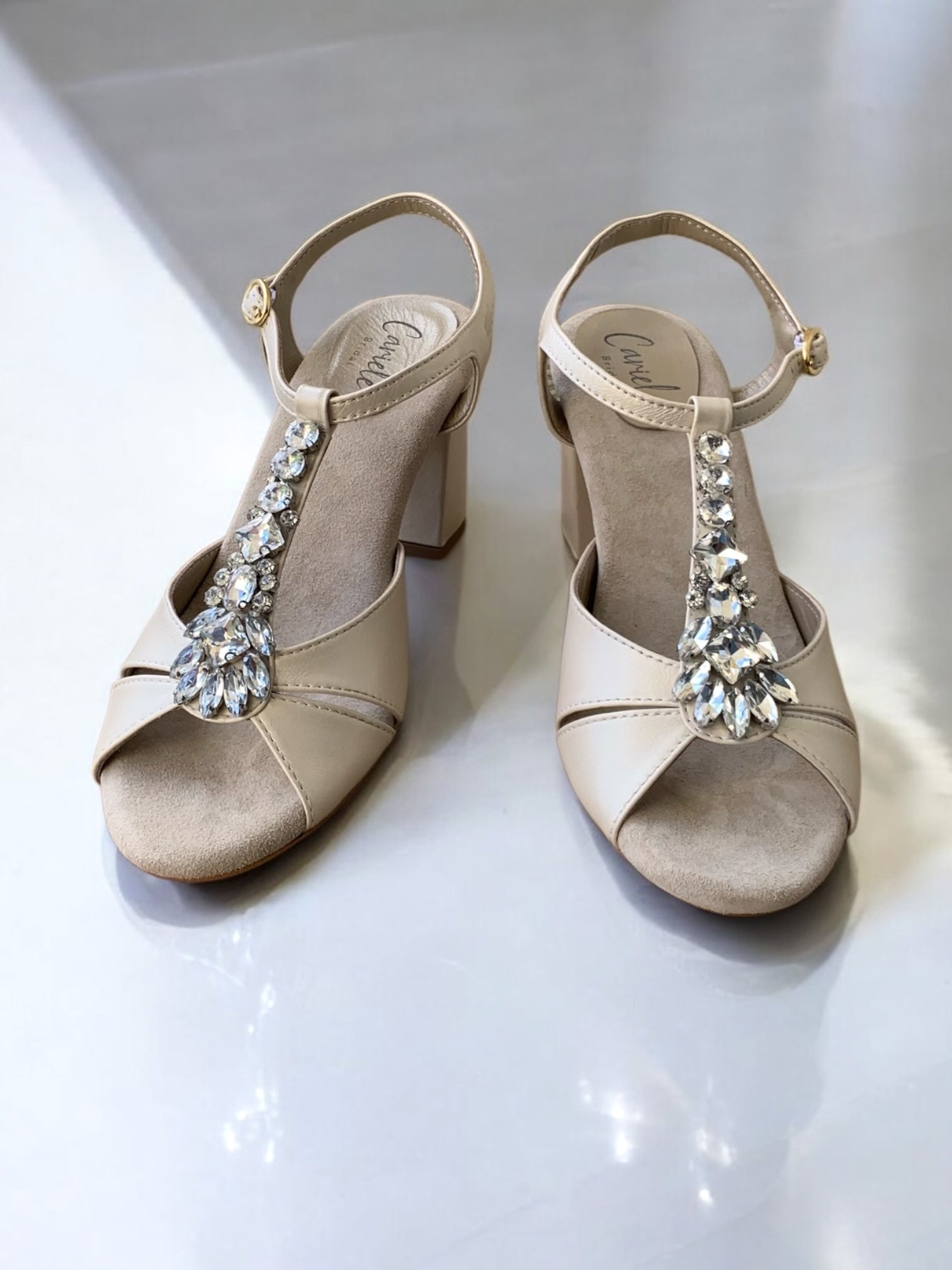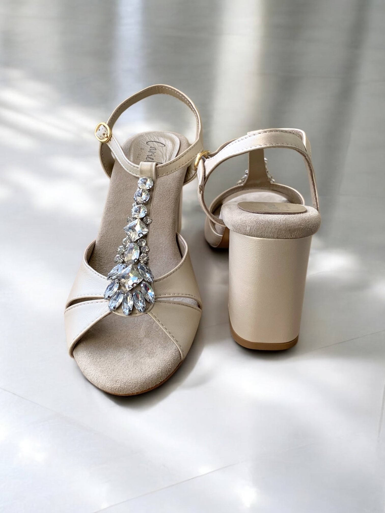 Una oda a la feminidad y la luz. El modelo Elisa fue diseñado para momentos donde la elegancia se fusiona con la celebración, cautivando todas las miradas con un brillo suave y etéreo. Una sandalia de silueta clásica con el toque de exclusividad y comodidad característico de Cariele, perfecta para la novia moderna o para ocasiones especiales donde el estilo es primordial.