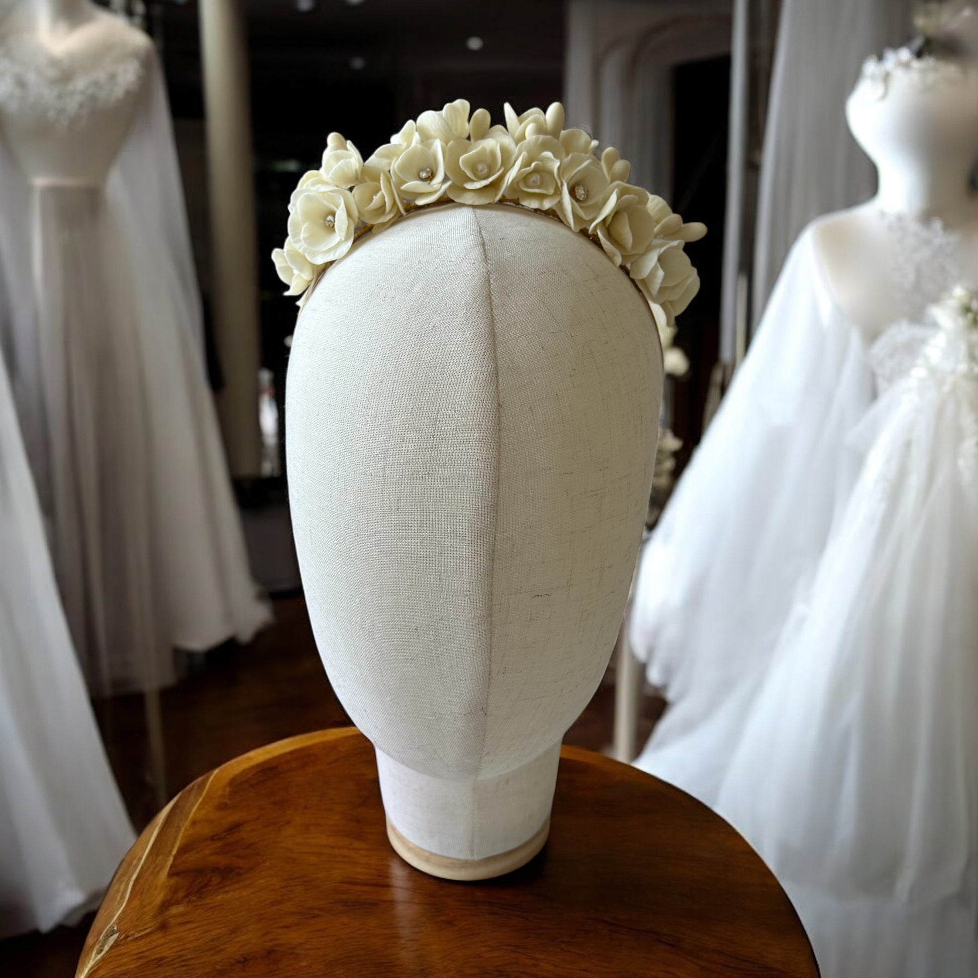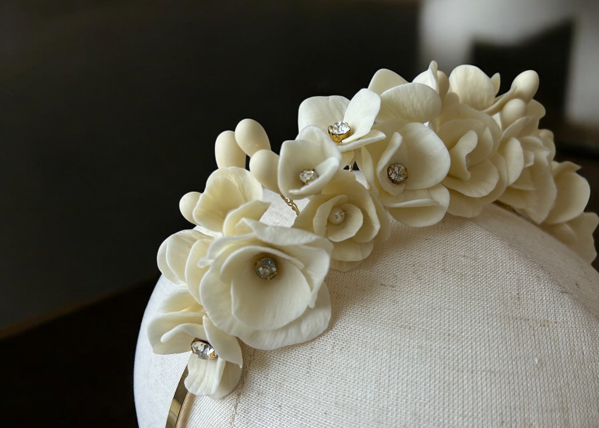 Tiara de cerámica japonesa hecha a mano, tono marfil.