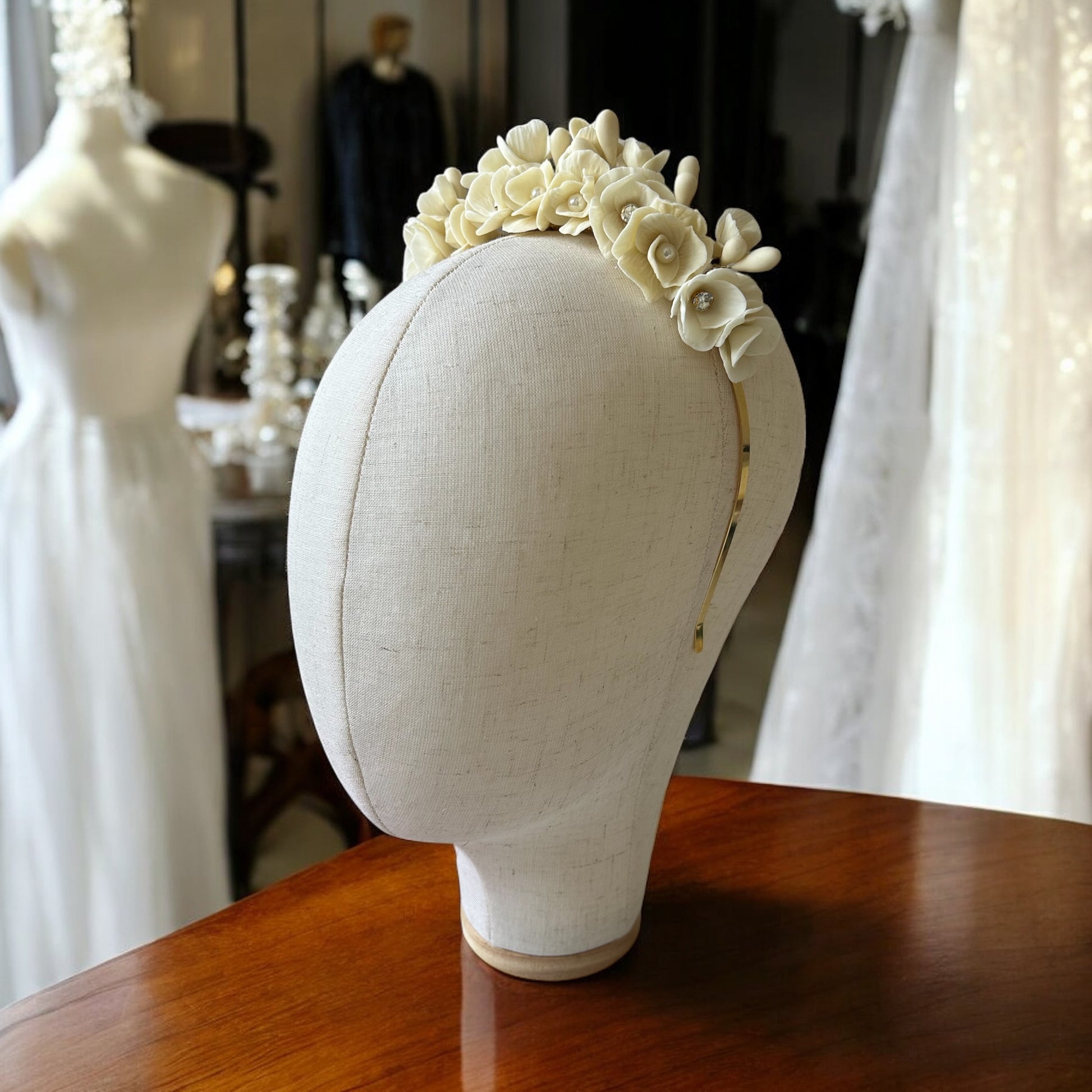 Descubre el delicado arte transformado en nuestra tiara de cerámica japonesa, elaborada completamente a mano en un exquisito tono marfil. Cada flor se crea pétalo a pétalo , con una precisión y paciencia que reflejan la más pura tradición artesanal.